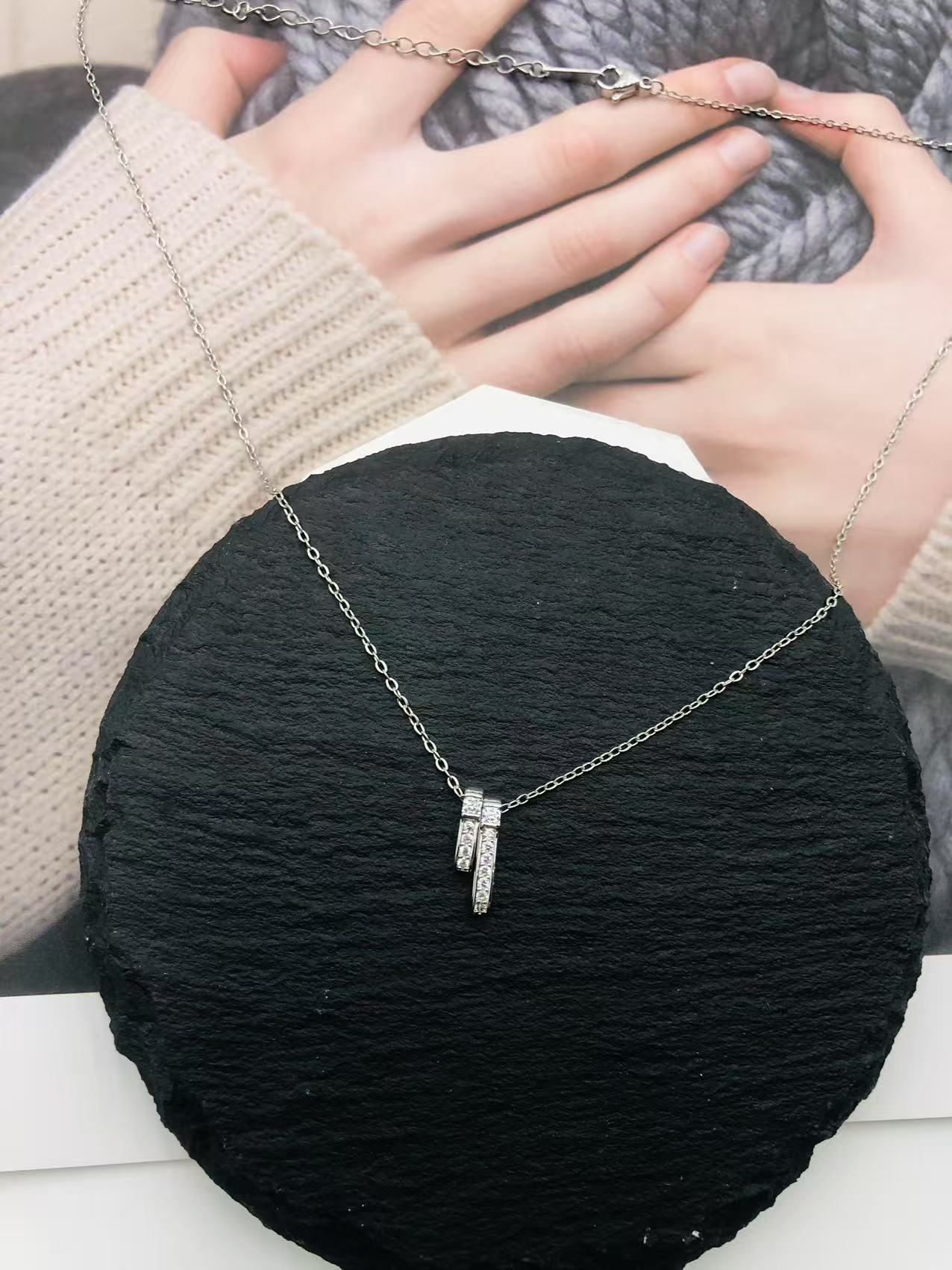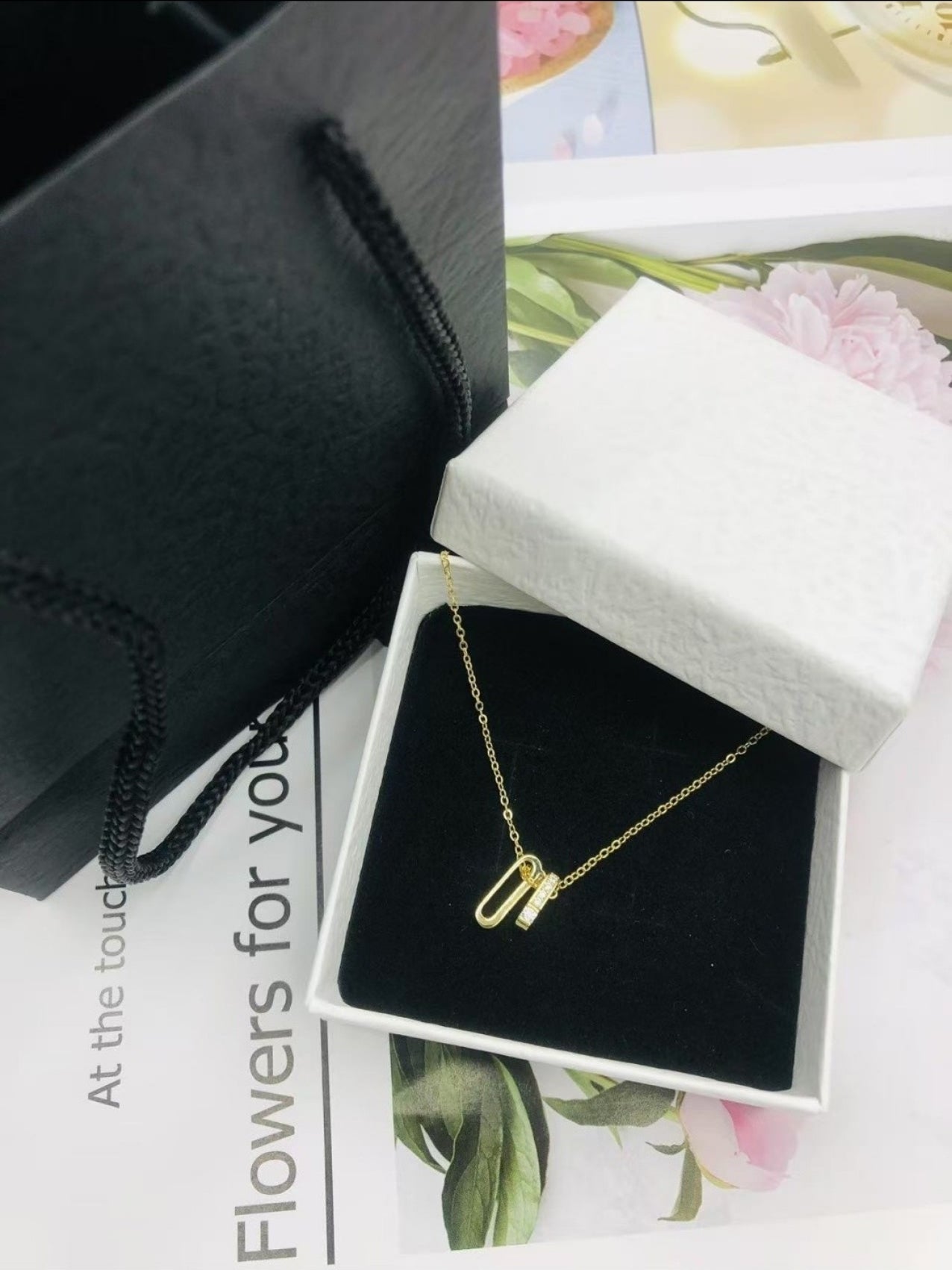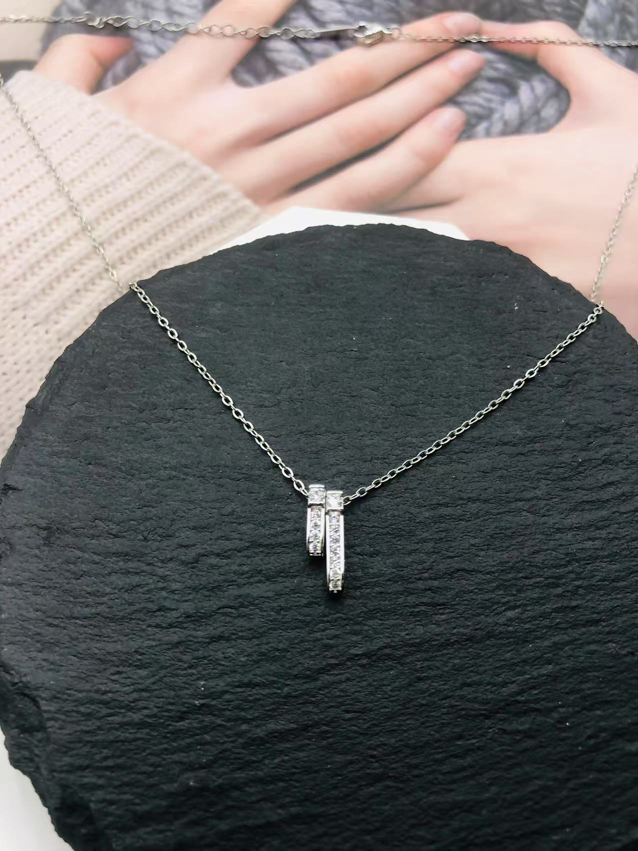 Captured exactly as shown! This Elegance Duo Necklace shines against the image’s luxe black backdrop (check!), offering gold or silver finishes to match your vibe. ✨ The minimalist pendant + ultra-delicate chain (mirroring the pic’s "sleek design" text!) add instant polish to tees, office fits, or evening dresses—effortlessly chic!
