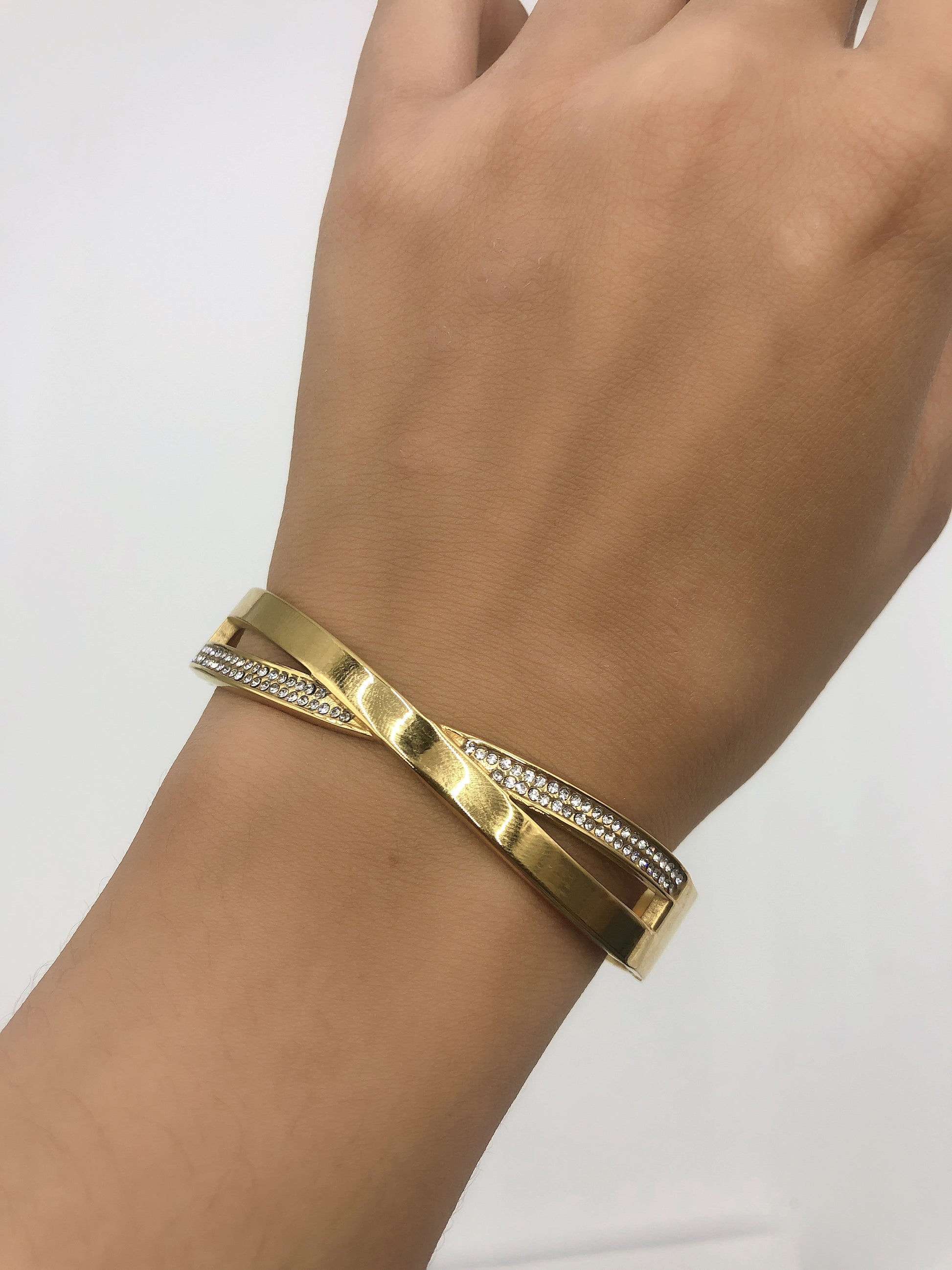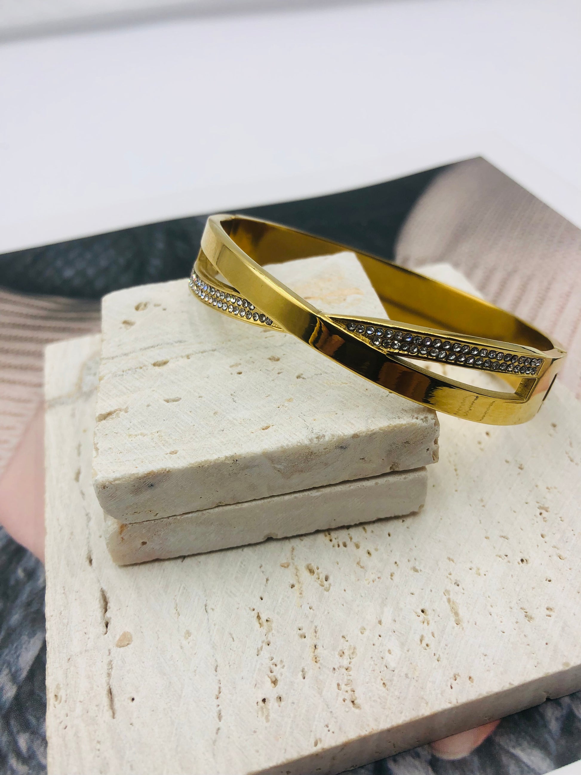 Captured exactly as shown! The Golden Sparkle Bracelet dazzles with premium gold plating and sparkling crystals, mirroring the image’s radiant design. ✨ Perfect for brunch dates, office looks, or evening glam—effortlessly elevate any outfit!