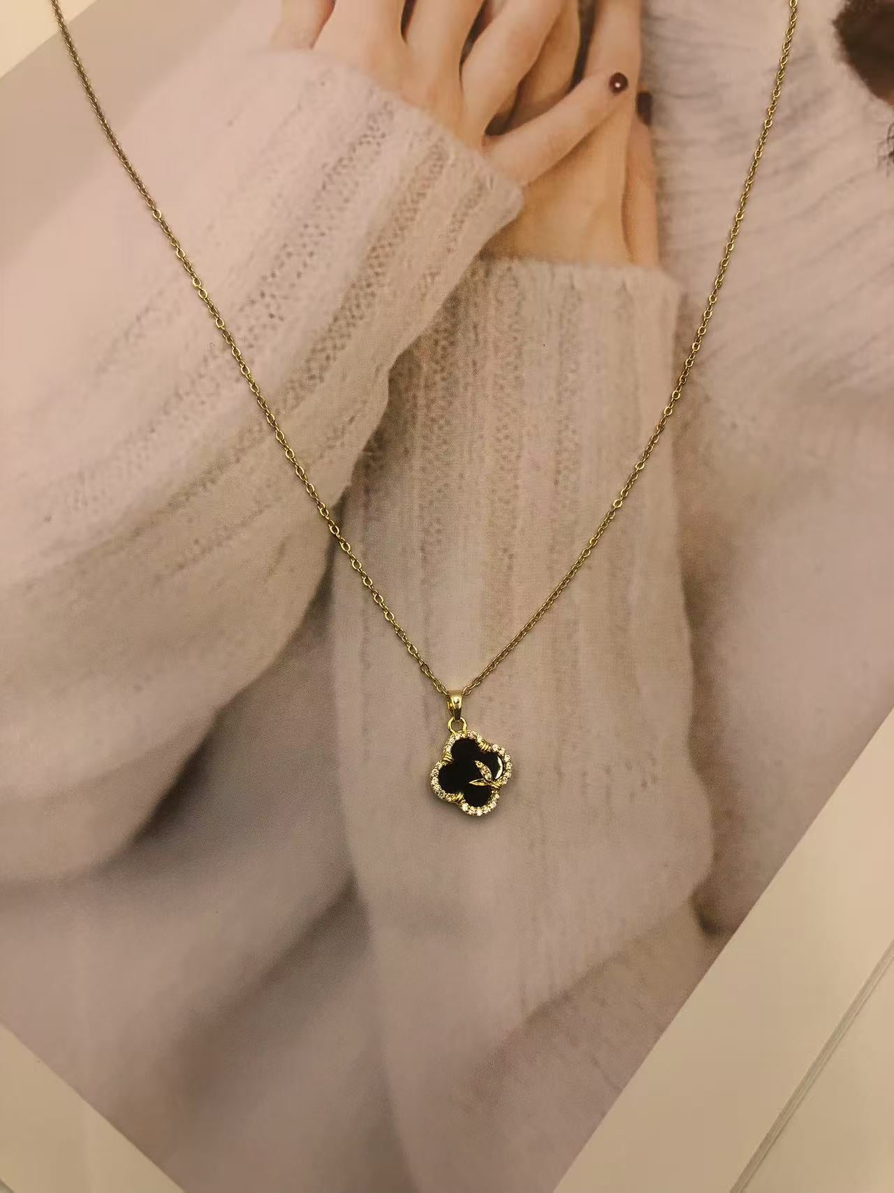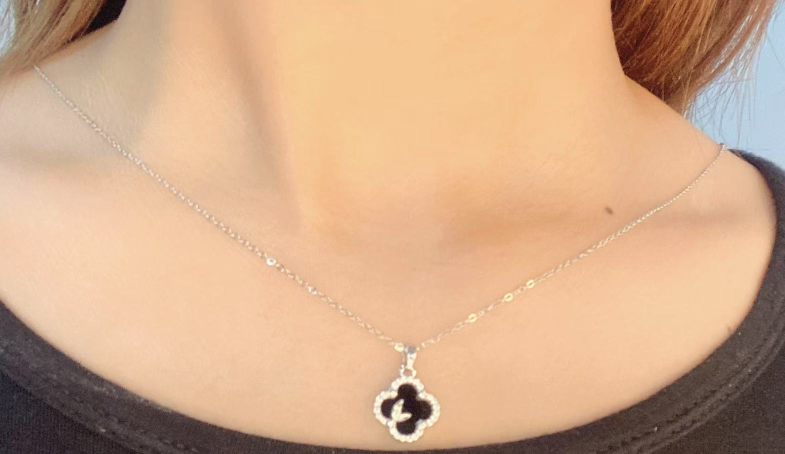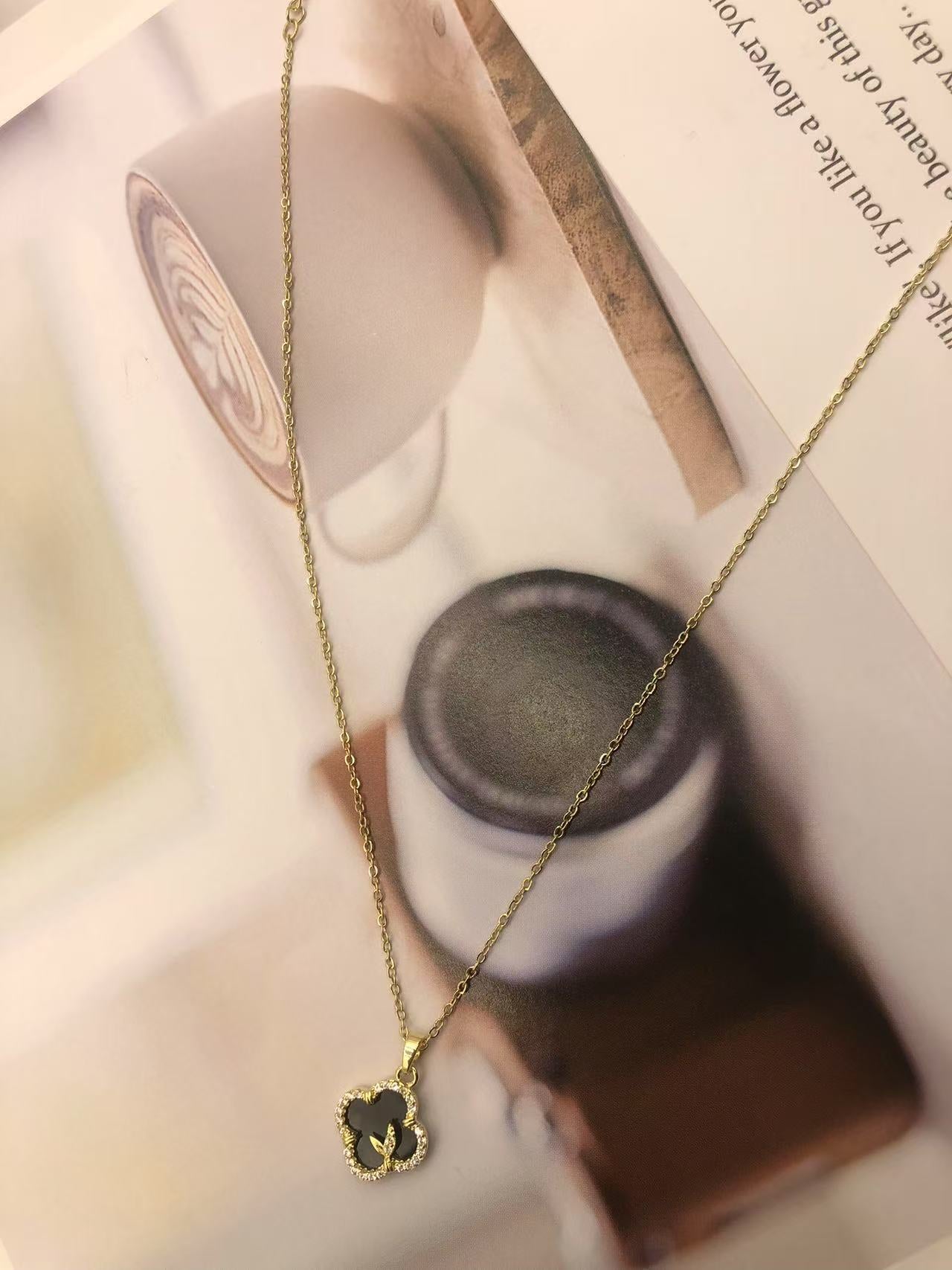 🍀 Lucky & Camera-Ready: Mirror-polished clover shines brighter than the pic’s "精致的项链" text promise!