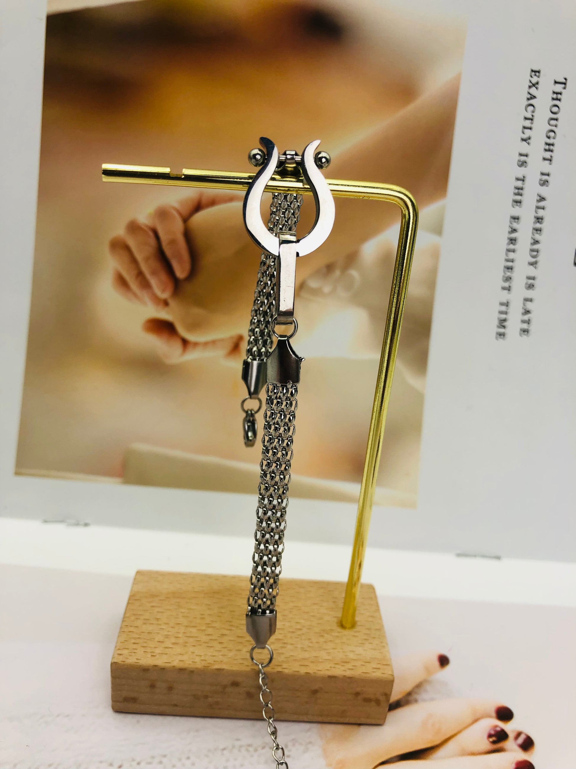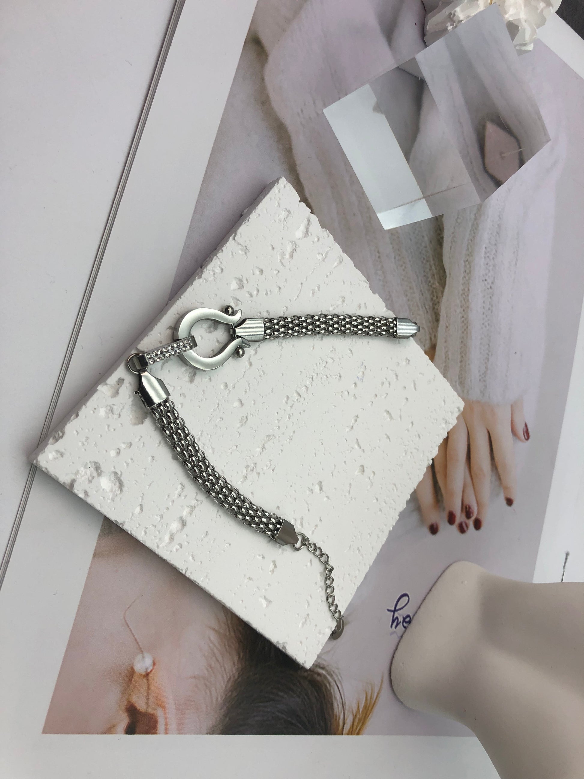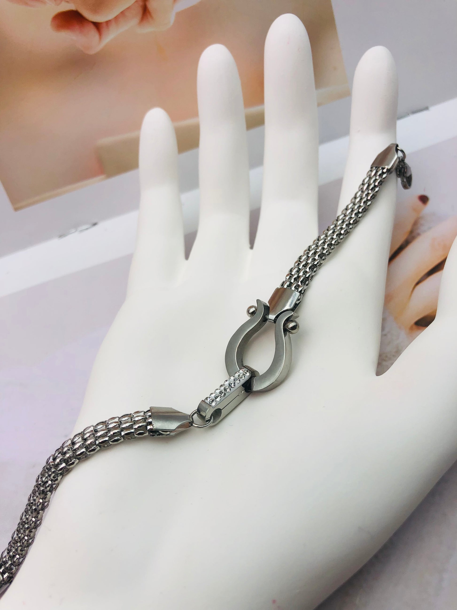 Matches the image perfectly! The MELLO Crystal U-Clasp Bracelet stars a signature U-shaped clasp encrusted with shimmering crystals, set on a sleek silver-tone mesh chain that mirrors the photo’s metallic glow. ✨ Shot against a crisp white mannequin hand (as shown!), its polished finish and textured links radiate modern luxury—perfect for stacking with watches or shining solo for polished everyday glam!
