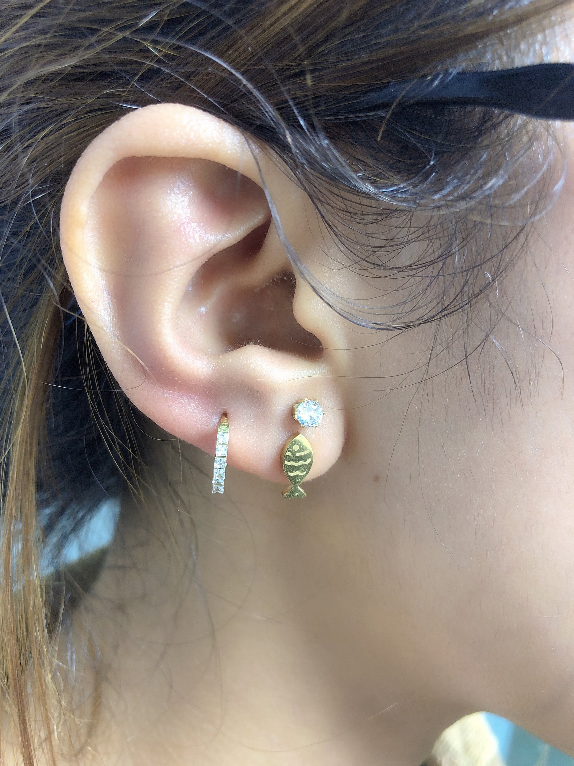 🌟 Photo-Exact Detailing: Glossy hoops + fish charms + faceted studs (replicates the image’s metallic contrast and stone-surface grit!).