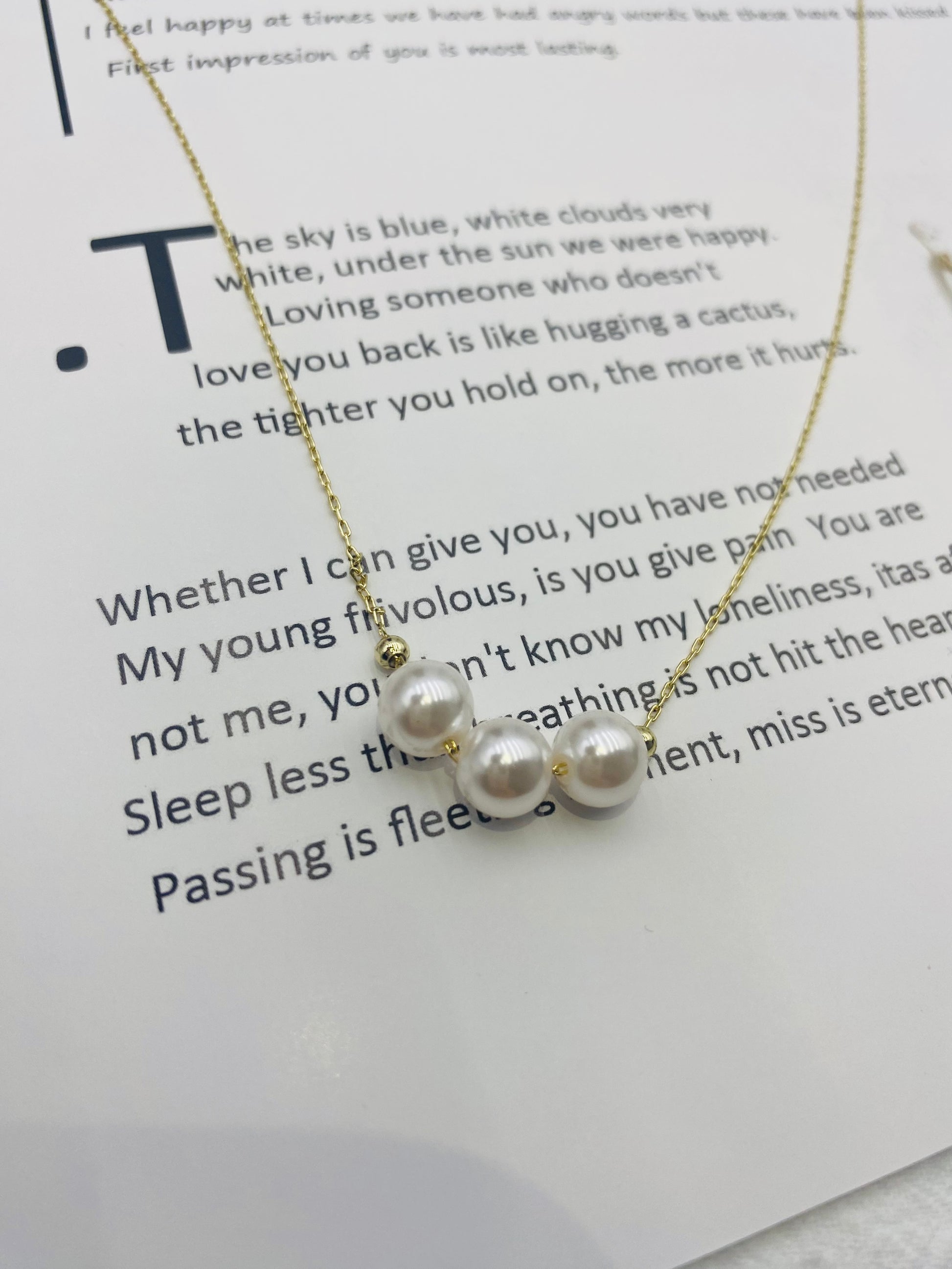 Matches the image perfectly! The Triple Pearl Radiance Necklace features three luminous freshwater pearls gracefully suspended on a delicate gold chain, mirroring the photo’s polished black stone stand and crisp white backdrop. ✨ Each pearl glows with timeless sophistication, aligned in a flawless curve that balances minimalist charm and classic luxury—ideal for elevating casual outfits or accenting evening glam!